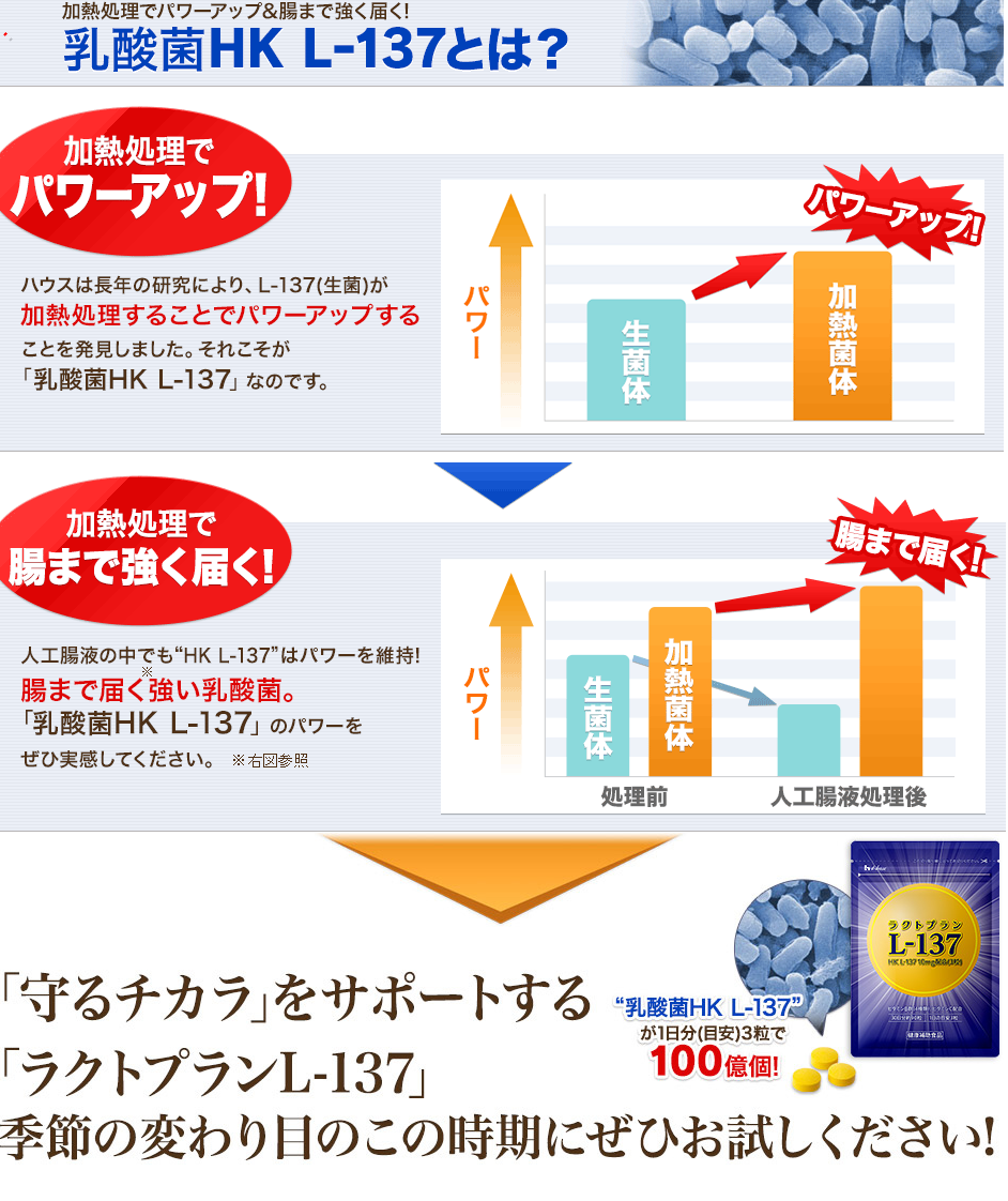 乳酸菌L-137を加熱処理したHK L-137は、免疫力を高める力がさらに強くなります。